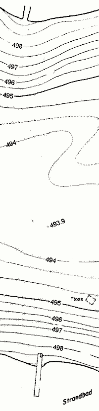 Plan: 1:1000 mit Höhenkurven von 0.5 m Aequidistanz.